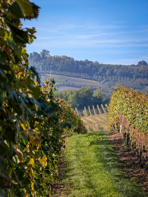 Im Herbst, während der Erntezeit, zeigt sich die Region im Nordwesten Italiens von einer besonders intensiven Seite: Die Weinberge leuchten in warmen Farben, morgens liegt sanfter Nebel über den Hügelzügen, und überall ist geschäftiges, aber ruhiges Treiben zu spüren.